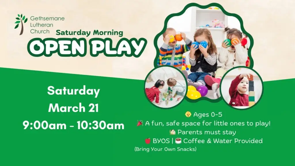 A fun, safe space for little ones to play on a Saturday morning! Parents must stay. Bring your own snacks. Coffee and water provided.
