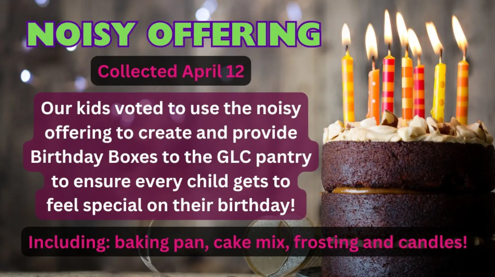 FeaturedGLC - Sanctuary 35 E Stanton Ave, Columbus, OH, United StatesOur kids have voted to use the noisy offering to create & provide Birthday Boxes to the GLC pantry to ensure every child gets to feel special on their Birthday.