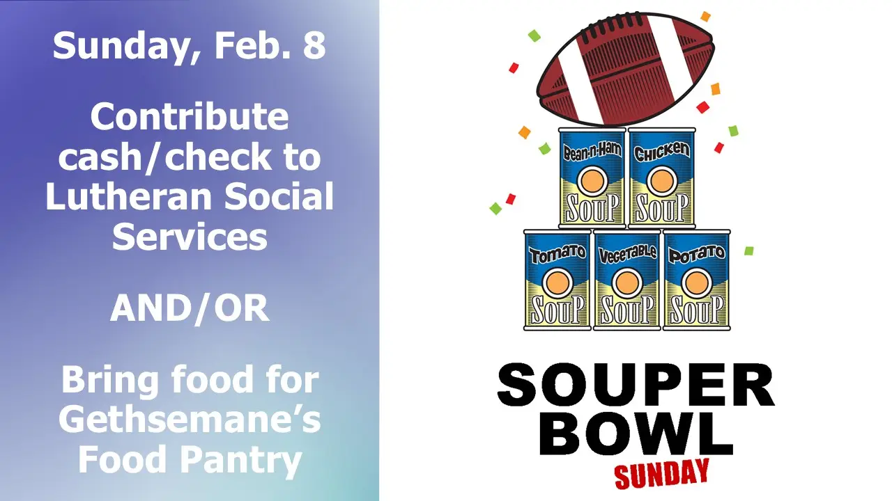 FeaturedGethsemane Lutheran Church 35 E. Stanton Ave., Columbus, OH, United StatesThis is the time of year when we have our Annual Ingathering of Food and Money on “Souper” Bowl Sunday for the Lutheran Social Services Food Pantry and for Gethsemane’s Food Pantry. For the LSS Food Pantry: We are asking all who would like to participate to bring cash or check (payable to Gethsemane Lutheran […]